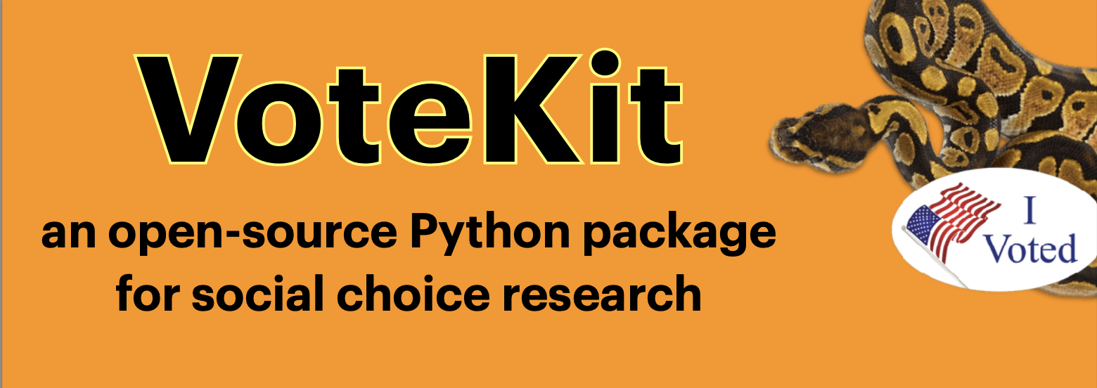 VoteKit is our “Swiss army knife for computational social choice research.” This Python package provides an end-to-end pipeline for reading in ballot data, running ballots through a voting rule to get election outcomes, and then visualizing and analyzing the preferences and winners. It also implements a suite of statistical models for generating realistic ballots given voter preferences. We use this package to compare different electoral systems for communities and advocates.